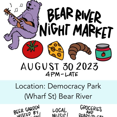 Bear River Night Market is on!Food! Produce! Music! Wed Sept 6, 4pm – 8pm