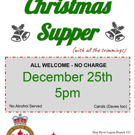 Bear River Coffee Break Sissiboo Cafe – Tuesday Dec.3rd 1:00 to 3:00 PM