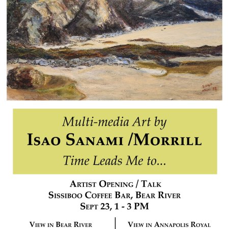 Artist Talk and Opening at Sissiboo Coffee on Sat,Sept 23,2023. “Time Leads Me To..”Isao Sanami-Morrill’s Art