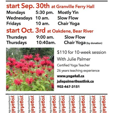 Yoga Classes start October 3rd in Bear River: Sept 30 in Granville Ferry