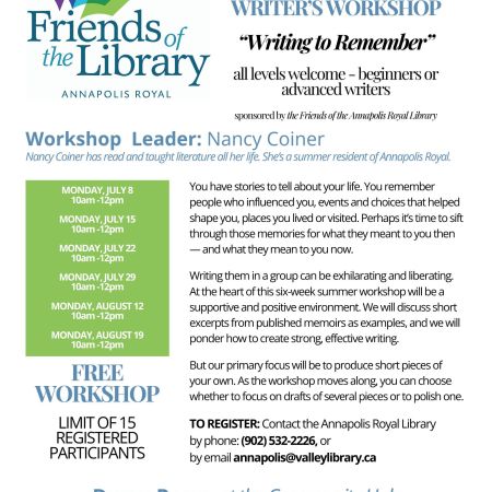 Register for Free Summer Writer’s Workshop in Annapolis Royal